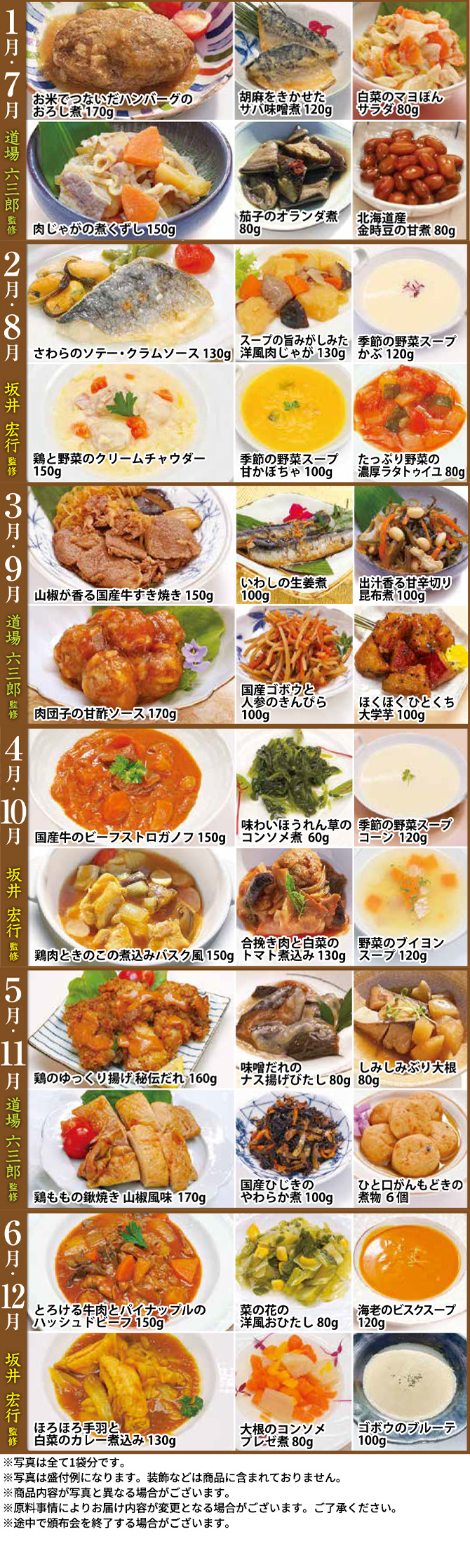 【6月、12月のお届けメニュー】