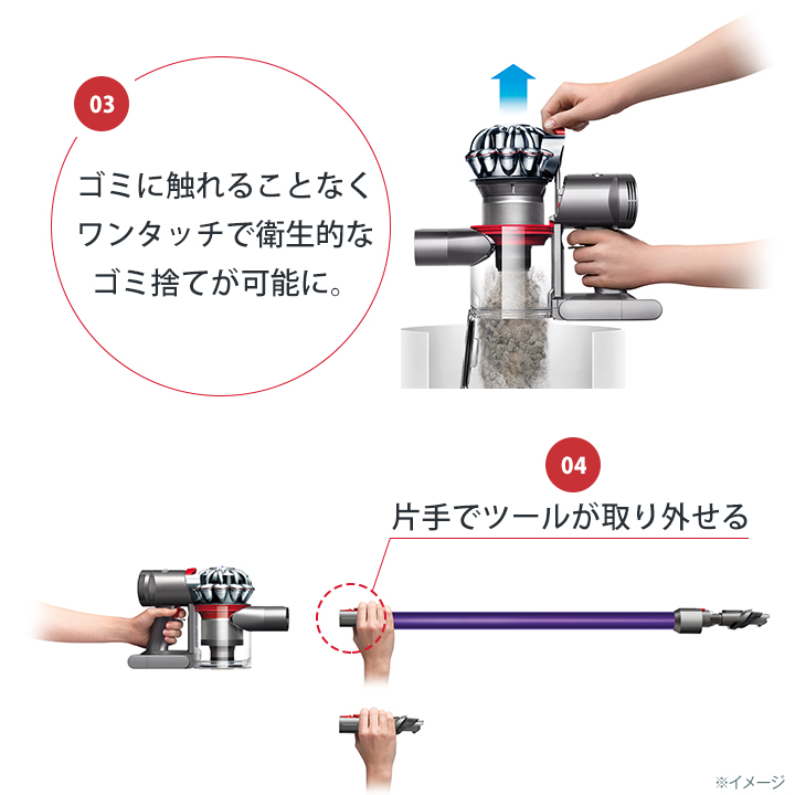 吸い取ったホコリやゴミに触れることなく、ワンタッチで簡単に捨てることができ衛生的。
