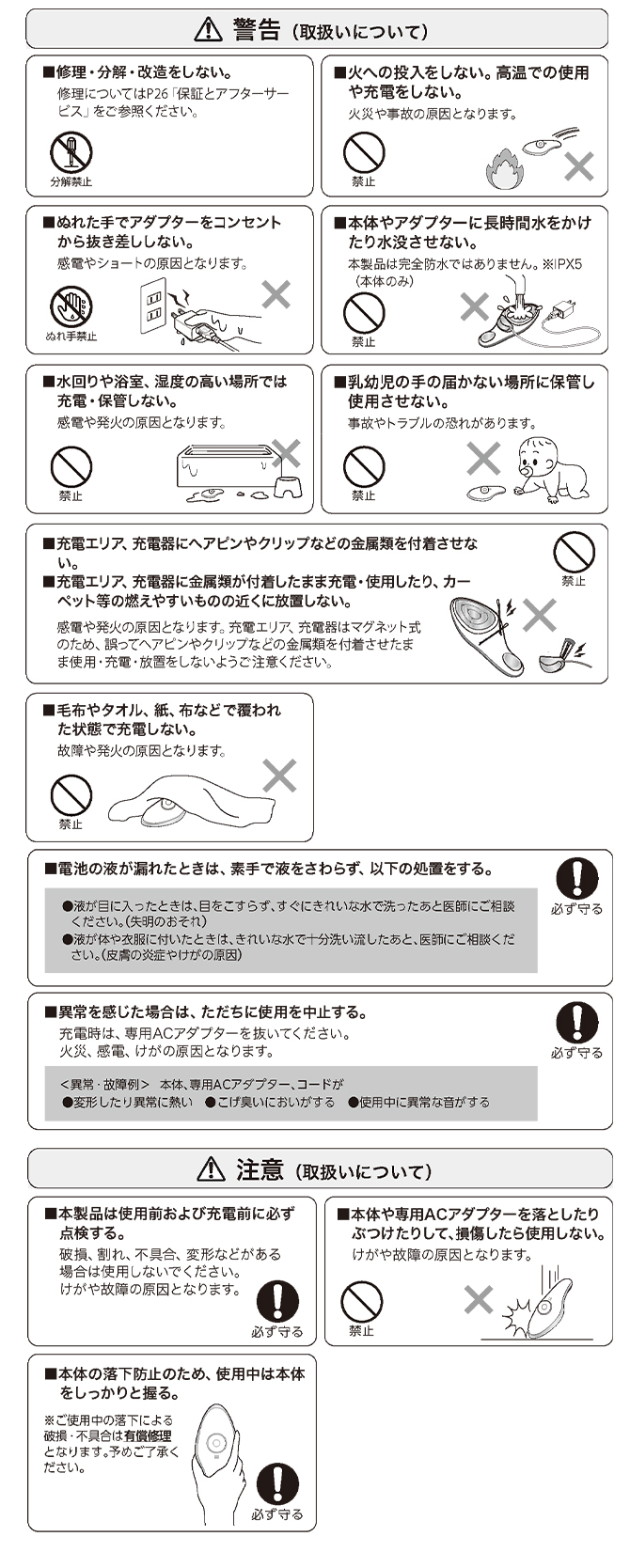 ※ペースメーカー等の医療用電子機器を装着している方は使用しないでください。