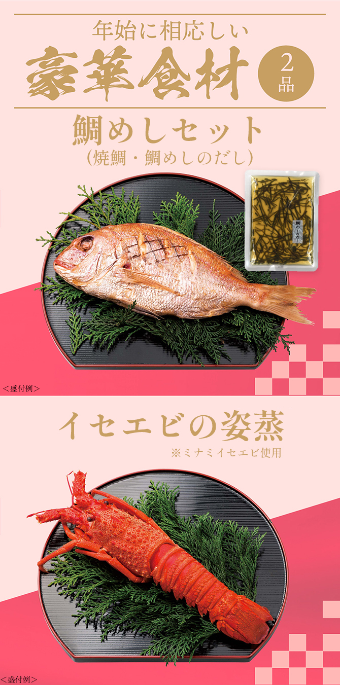 鯛めしセット(尾頭付の焼鯛、鯛めしのだし)