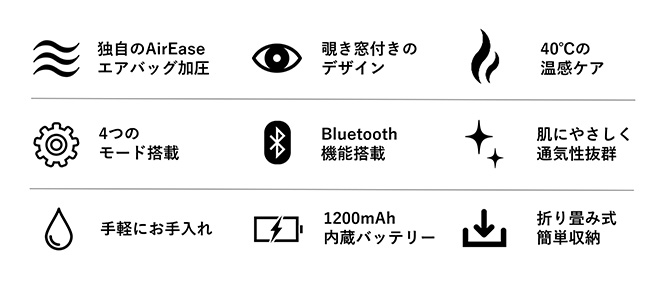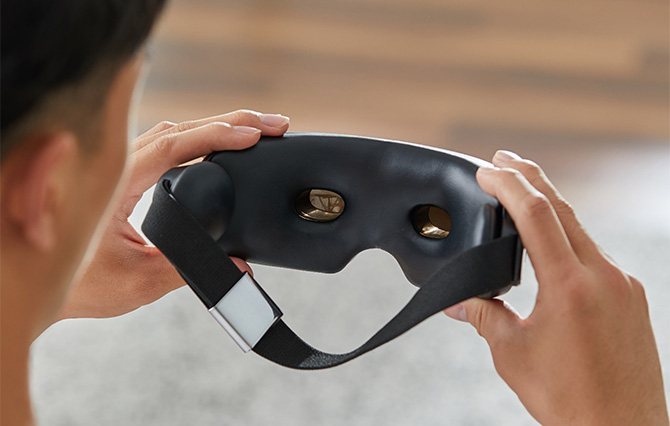 目元をじんわりと温かく包み込み、エアバッグによる心地よい圧力でリフレッシュしてくれます。