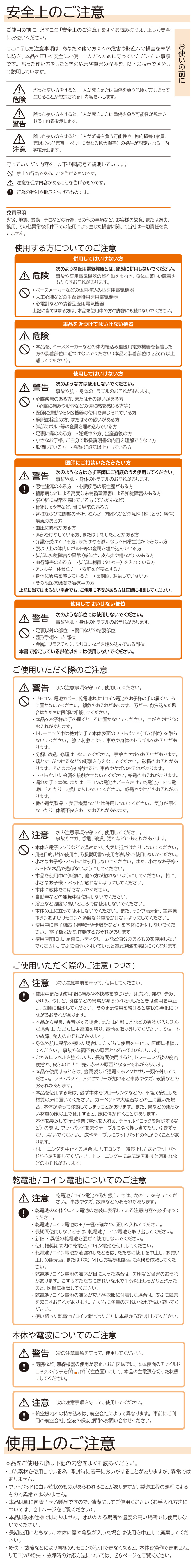 ※ペースメーカー等の医療用電子機器を装着している方は使用しないでください。