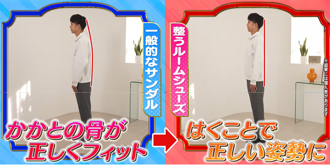 はくことで姿勢が整い、家事などの普段の生活がラクになるルームシューズ「YONAMINE 整うルームシューズ」