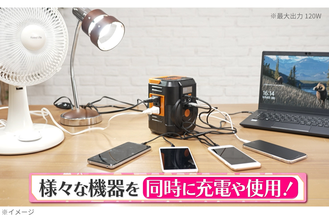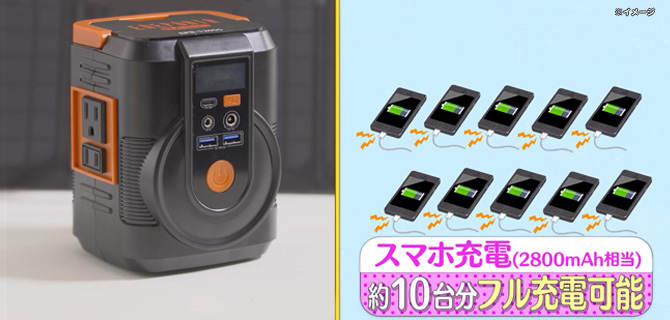 ハンドル付きなので持ち運びも楽々。非常時やアウトドアでの電源確保やスマホの充電に。
