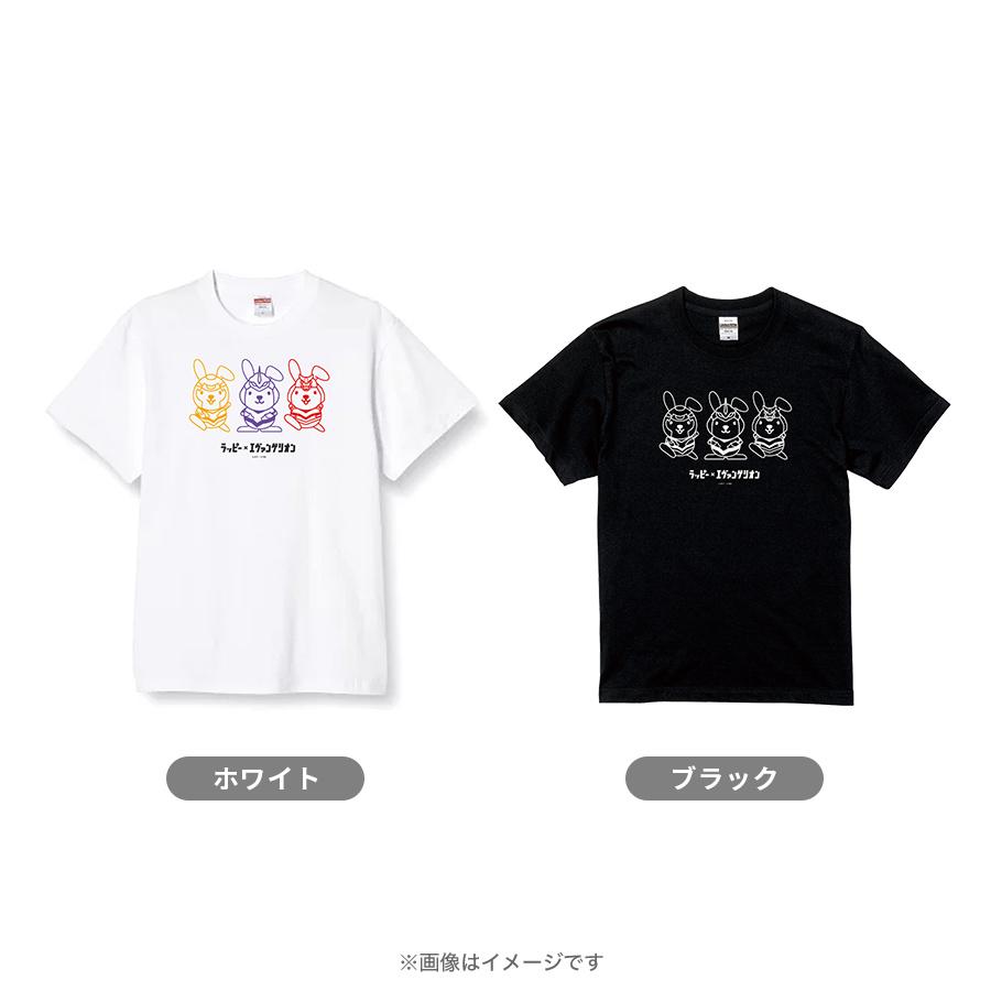 ラッピーが初号機・零号機・2号機のコスチュームを身にまとったデザインのTシャツ
