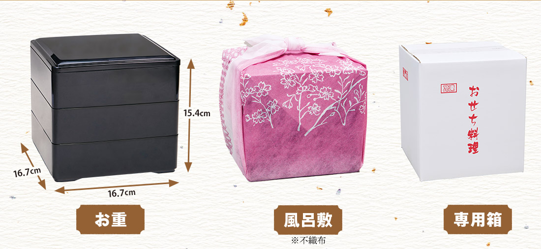 ※特典「ミニたい焼」は、お重内には入りません。専用箱に同梱してお届け致します。